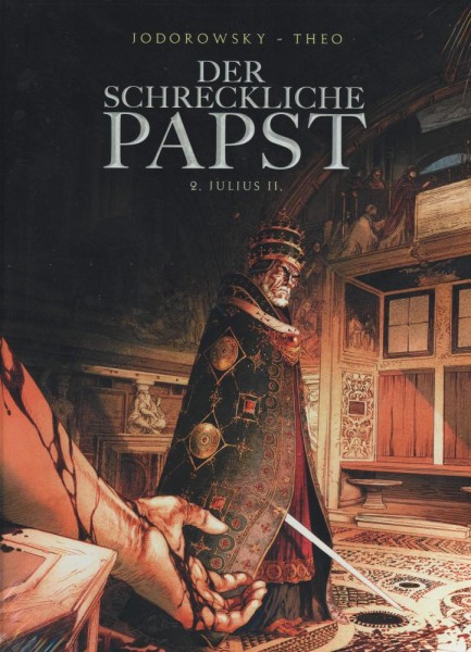 Am 18. August 1503 findet der Borgia Papst Alexander VI. unter mysteriösen Umständen den Tod. Schon bei Tagesanbruch beginnt das Wettrennen auf den päpstlichen Stuhl. Um an ihr Ziel zu gelangen, ist den Anwärtern jedes Mittel recht. Selbst vor Mordversuchen schrecken die exklusiven Mitglieder des dekadenten und machthungrigen Zirkels im Vatikan nicht zurück. Kardinal Giuliano della Rovere, ein Erzfeind des einflussreichen Borgia-Klans, wäre sogar bereit, seine Seele dem Teufel zu verkaufen, um an das höchste Amt zu gelangen... Ein Jodorowsky in Bestform und atemberaubende Zeichnungen von Theo (Der tönerne Thron) machen »Der schreckliche Papst« zu einem absoluten Highlight des Splitter-Programms